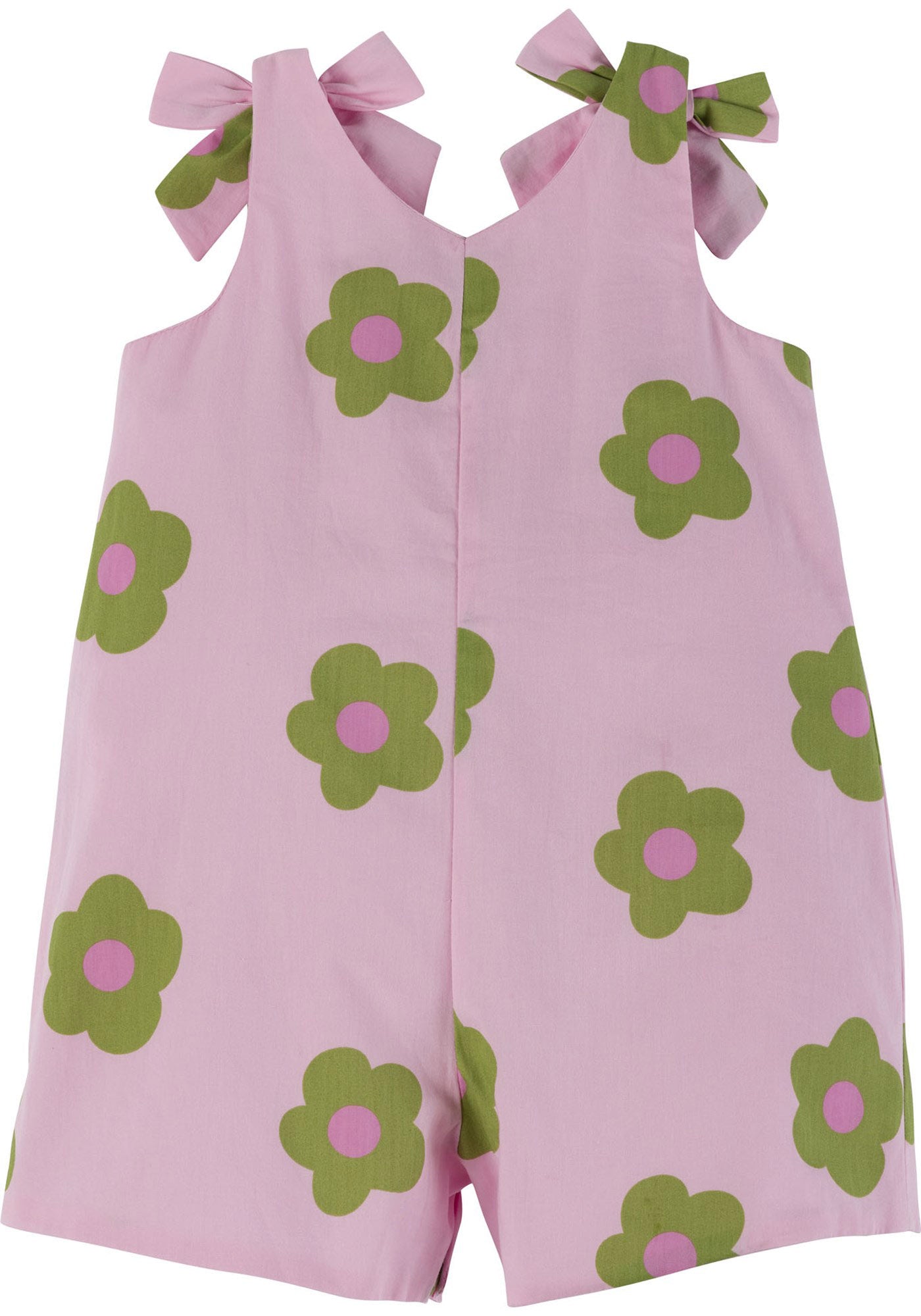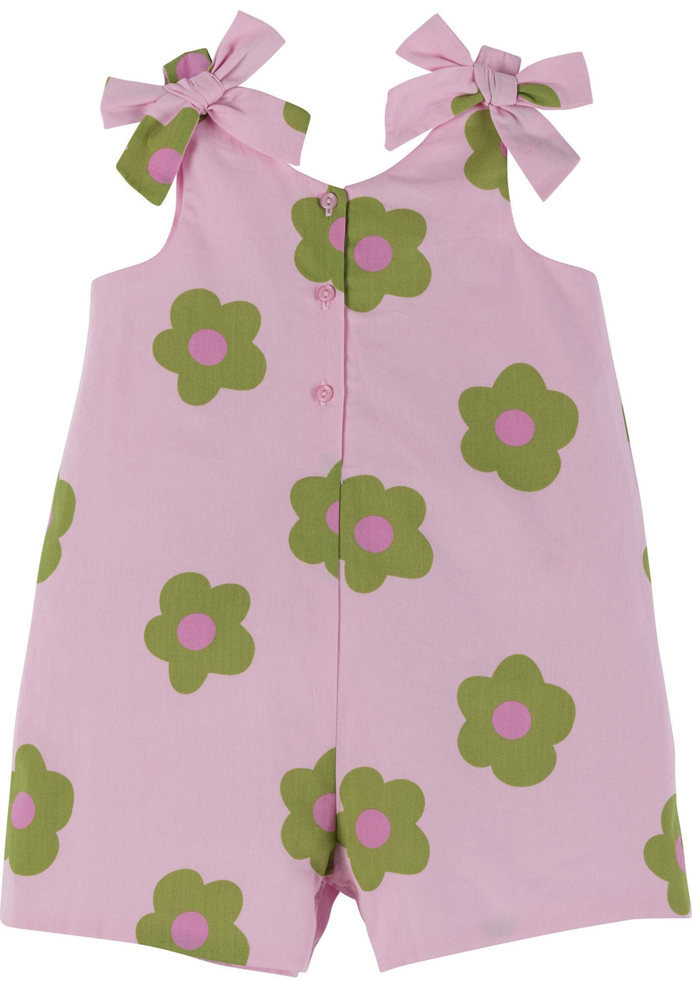 אוברול ורוד רך ומלא שמחה, עם הדפס פרחים ירוק-פיסטוק וקשרי כתפיים מתוקים במיוחד – שילוב מנצח בין נוחות, סטייל וייחודיות.