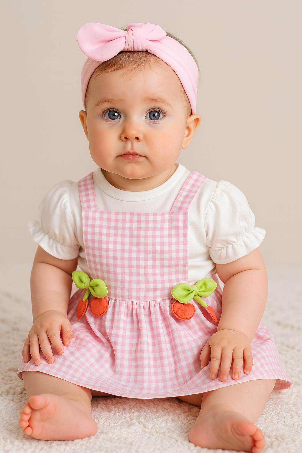 שילוב מושלם של נוחות וסטייל, עשויה מבד כותנה נעים במיוחד, עם דוגמת משבצות ורוד-לבן וקישוטי דובדבן עדינים שמעניקים טאץ' שובב ומלא חיים.